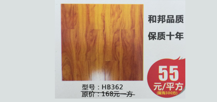咨询电话:萧小姐 13318291132 和邦盛世大型厂家团购,复合地板55元/平方,另有实木地板、多层实木地板优惠,仅限活动当天,即日起接受报名。